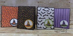 Cut out witch hat from Toil & Trouble paper. (There are framelits for this paper pack which will make it easy. I fussy cut the witch hats for these cards, because I like to fussy cut.)