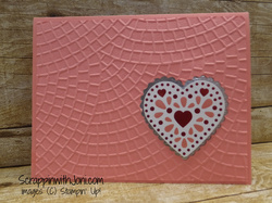 Punch scalloped heart in embossed card front.