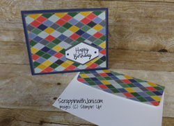 I needed some masculine birthday cards, this is an easy card to make. The Country Club designer series paper pack has gold designs on one side with plaids and argyle print on the on the other side. It is the perfect paper when you need masculine cards.