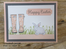 I don't know which I like more on this card those pretty petal pink spring boots or the bunny (if you look close you see he glimmers with Wink of Stella). This card speaks spring to me.