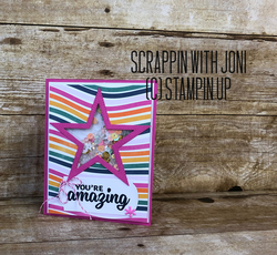 T he May 2020 Paper Pumpkin kit included 4 of the 5 new in colors. It is a bright, colorful kit. This card uses 1 of the new in colors, Magenta Madness. It is a shaker card.