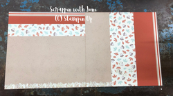 Attach 4 X 12 Crumb Cake with Espresso splatter to Cajun Craze base page. Note it is vertical placement. The Left side has this paper in horizontal placement.
